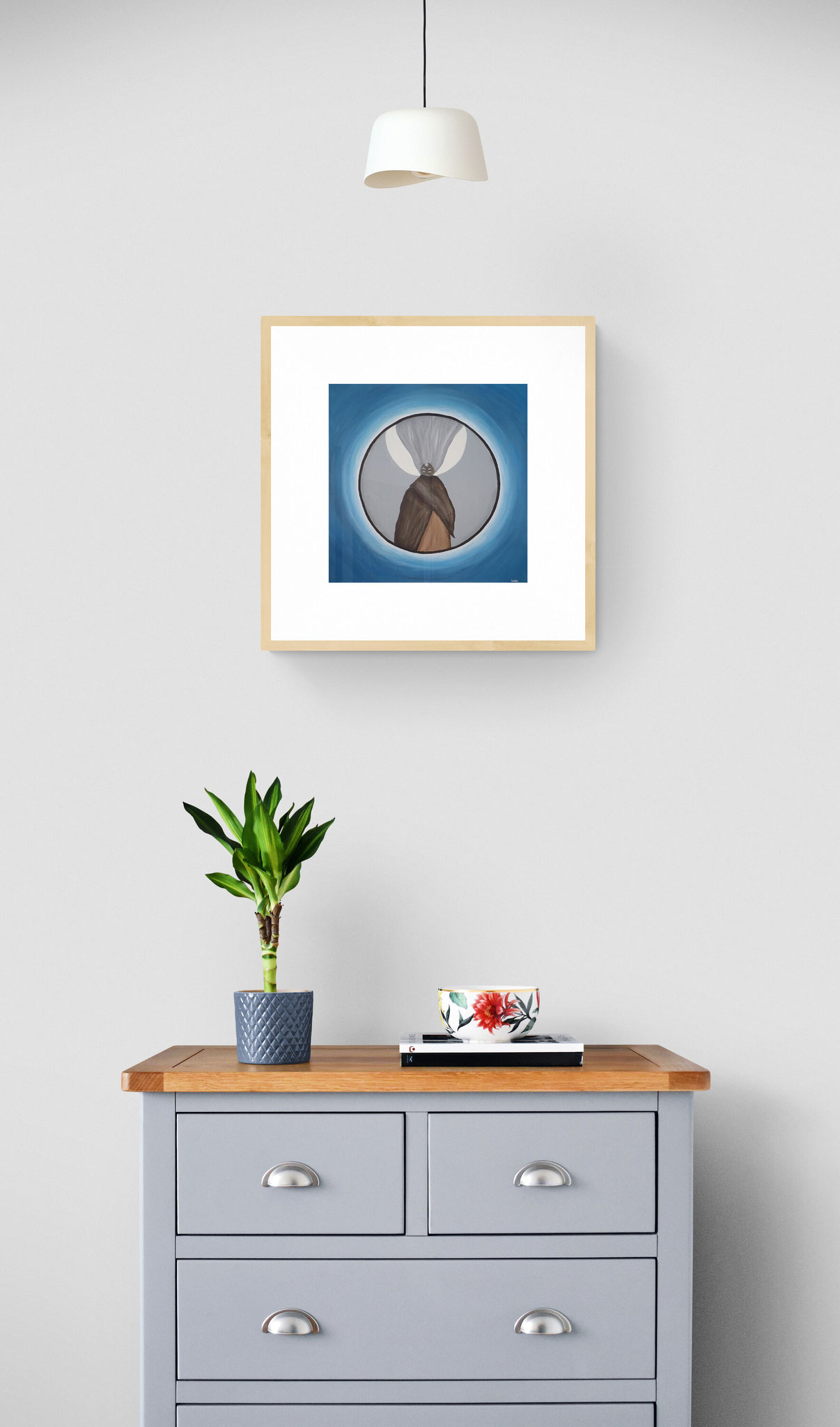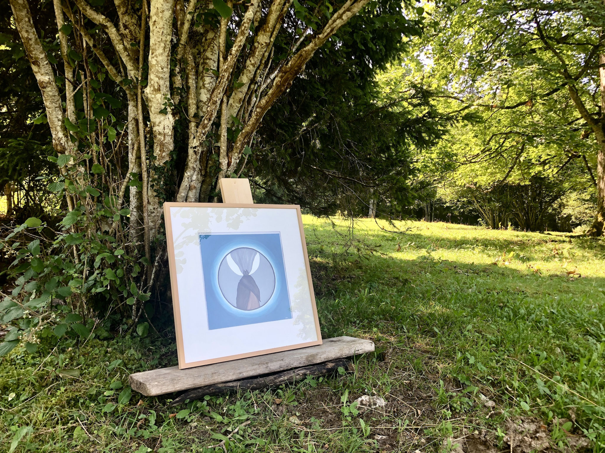 Vendue dans un beau cadre en tilleul massif non traité 60x60cm avec passe-partout