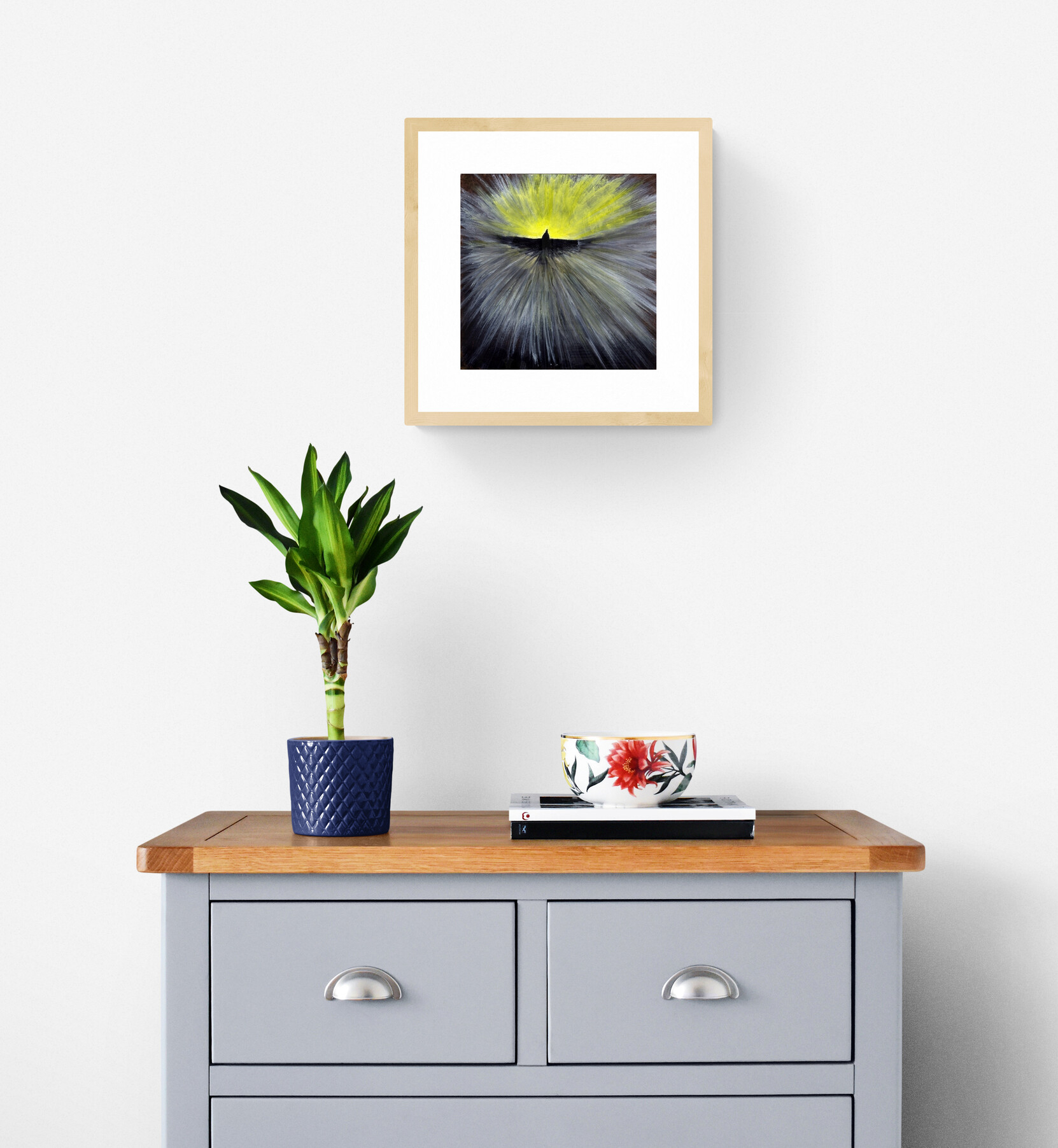 Vendue dans un beau cadre en tilleul massif non traité 40x40cm avec passe-partout